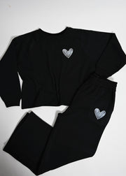 Exclusive Gentle Heart Fleece Crew & Jogger Pant Sweatsuit Set | Black